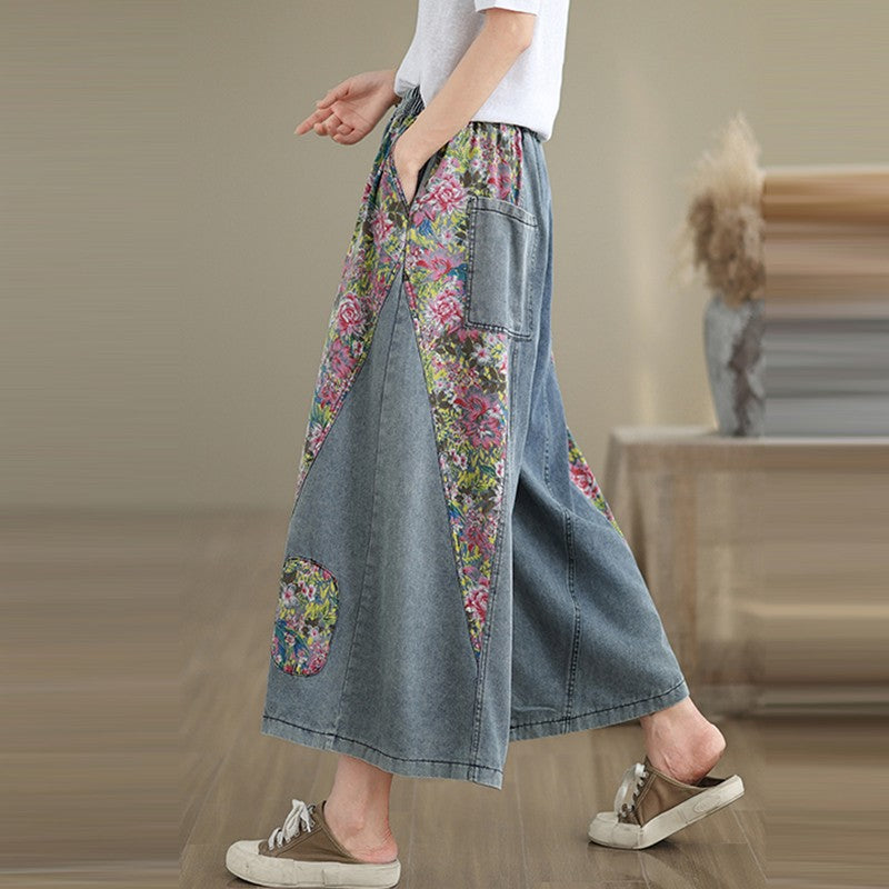Featuring an eye-catching spliced pattern, these wide-leg jeans are the perfect blend of style and comfort. The relaxed fit ensures freedom of movement, while the unique design adds an artistic touch to your everyday look.