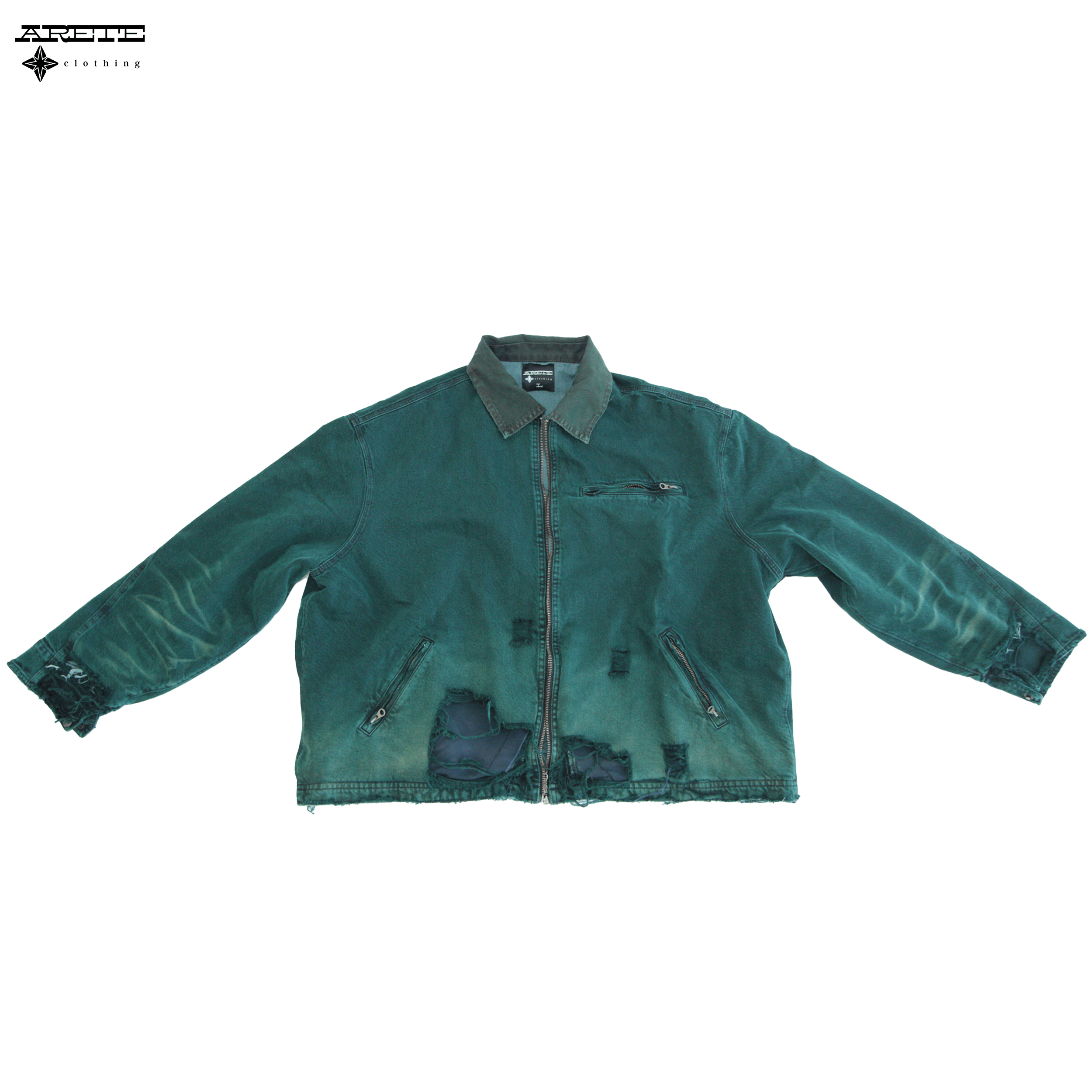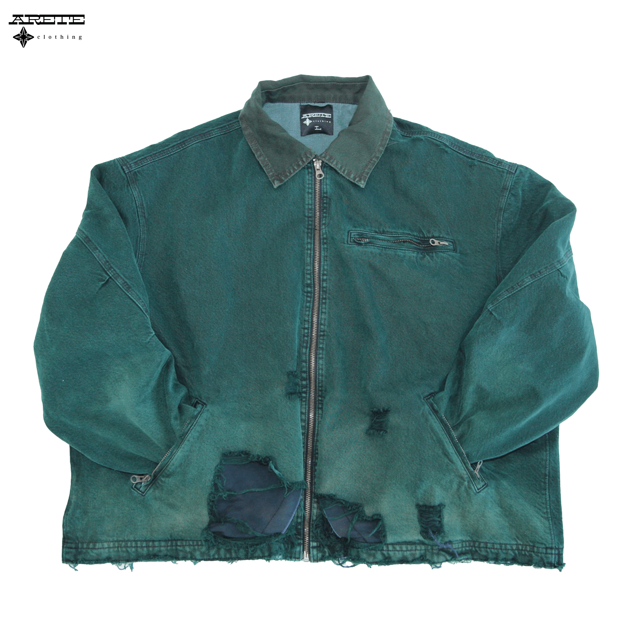 Distressed Denim Jacket - Faded Pine