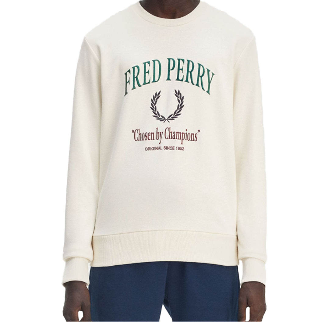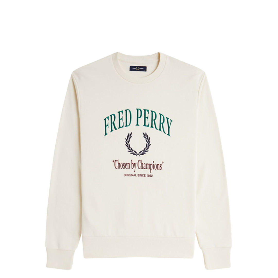 Cotton French terry fabric / Regular fit / Ribbed crew neck / Ribbed cuffs and hem / Embroidered Fred Perry branding on the back and left hand chest