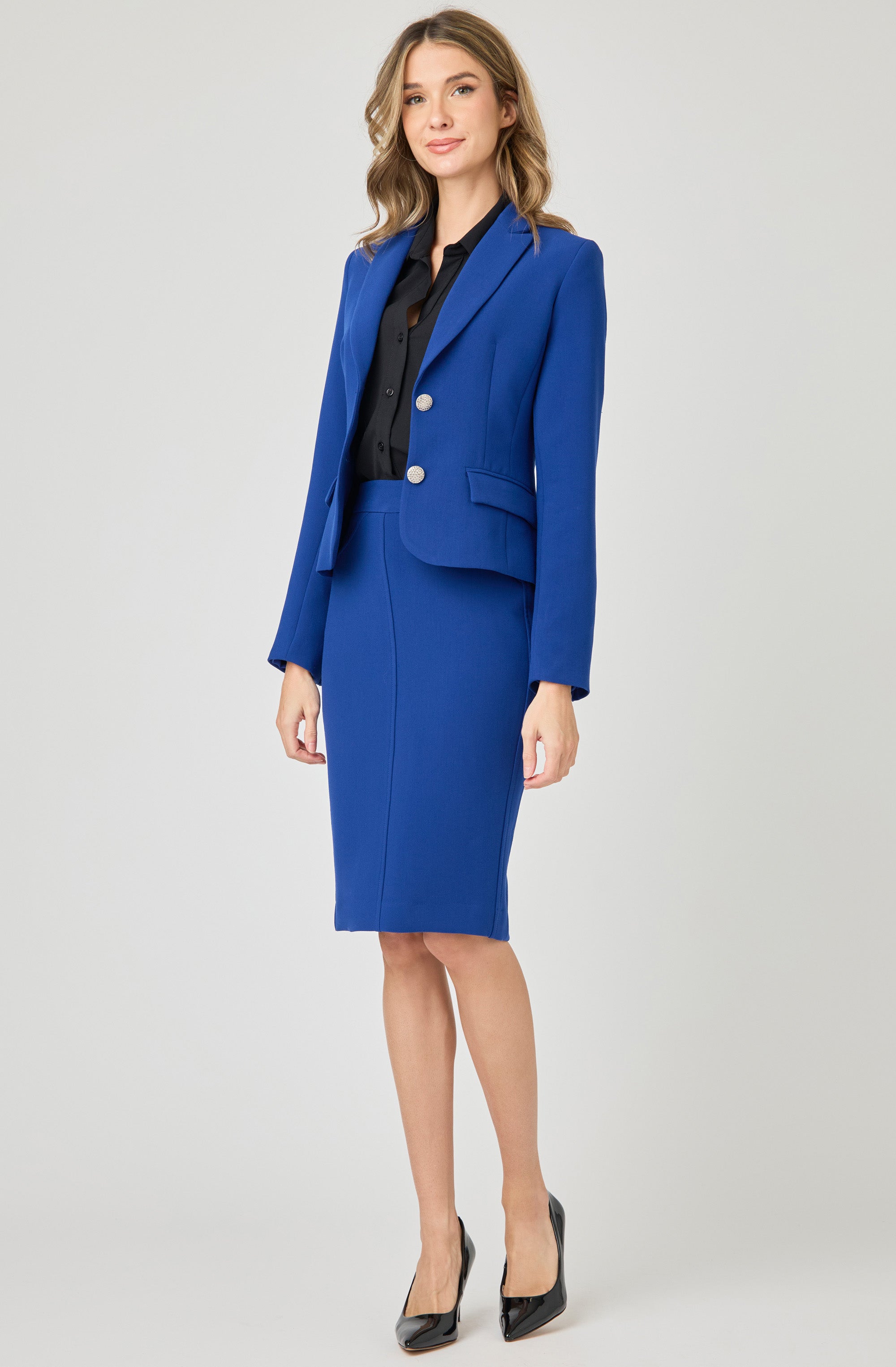 Introducing the Femme de Carriere Women's 2 Silver Buttons Fitted Jacket, a must-have for any fashion-forward individual. This jacket boasts a stylish and sophisticated design, complete with eye-catching silver hammered textured buttons at the front of jacket and practical front pockets. Made with high-quality materials and lined for added durability and warmth, this jacket is sure to become a staple in your wardrobe.