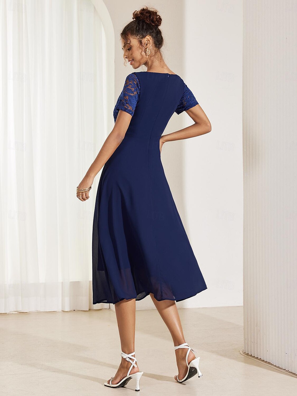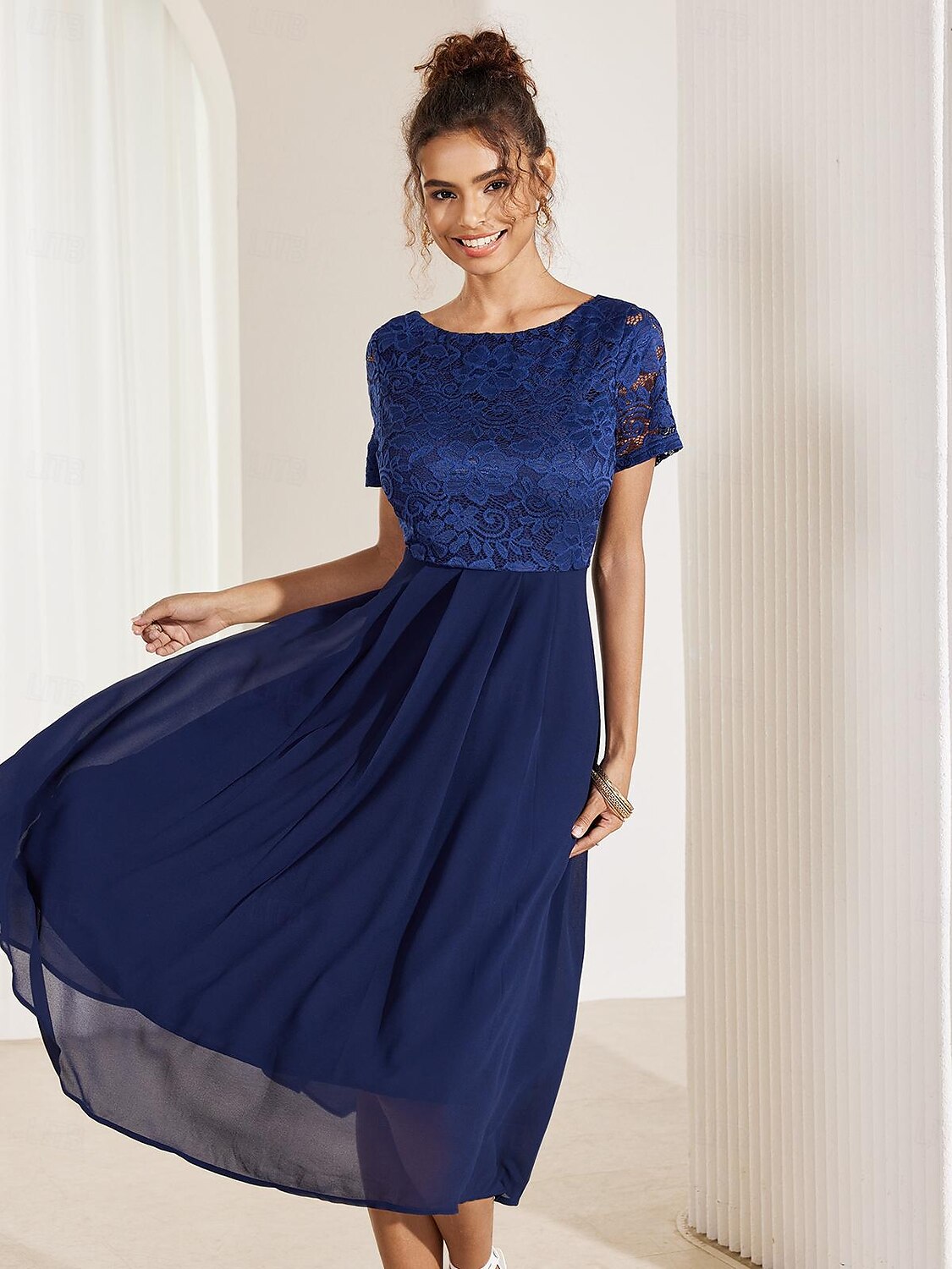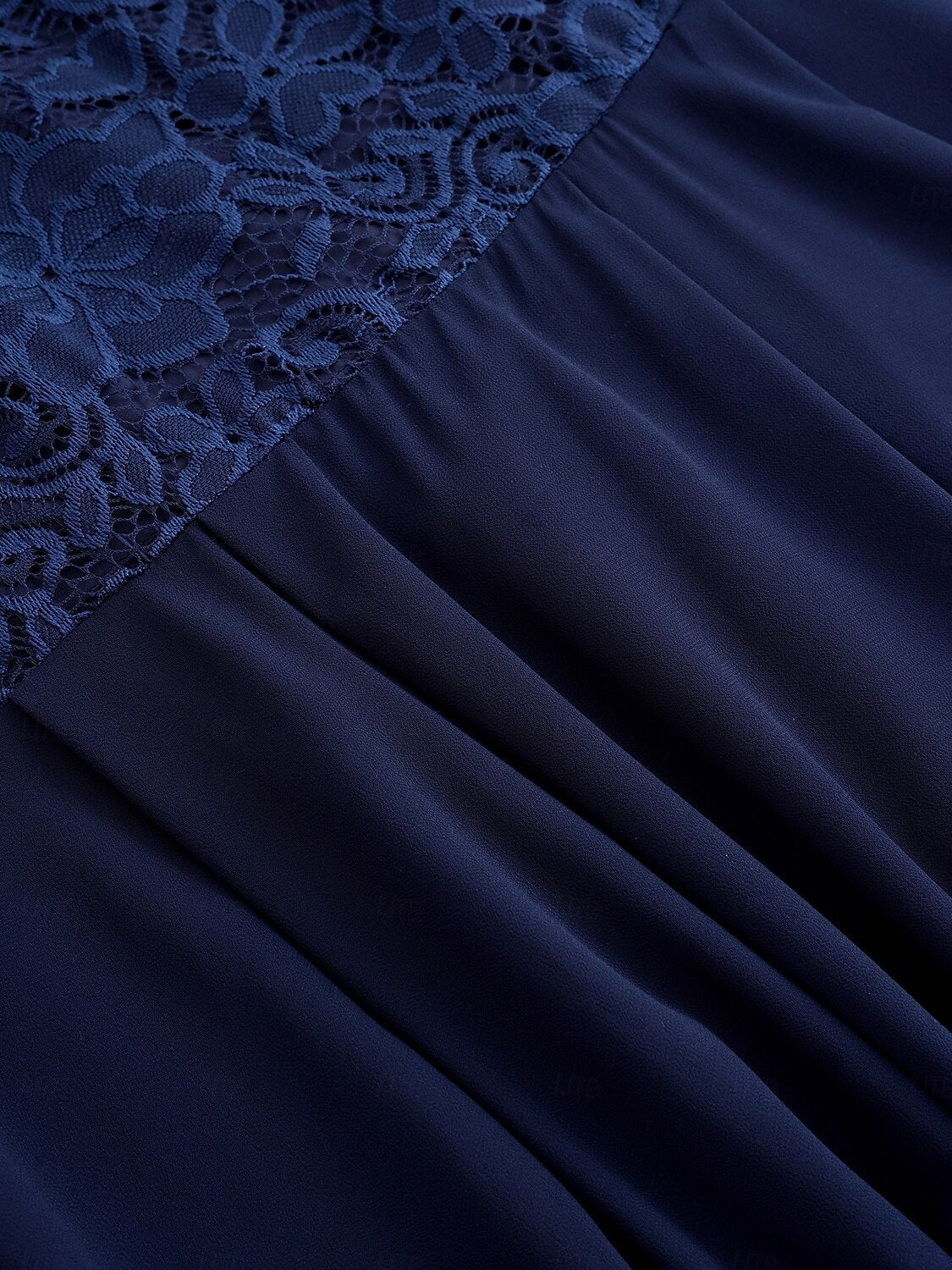 Step into sophistication with the Juno™ Blue Lace Ruffle Dress, designed for those special moments where style meets comfort. Featuring lightweight chiffon and delicate lace details, this dress is perfect for wedding celebrations, cocktail parties, or any formal event.