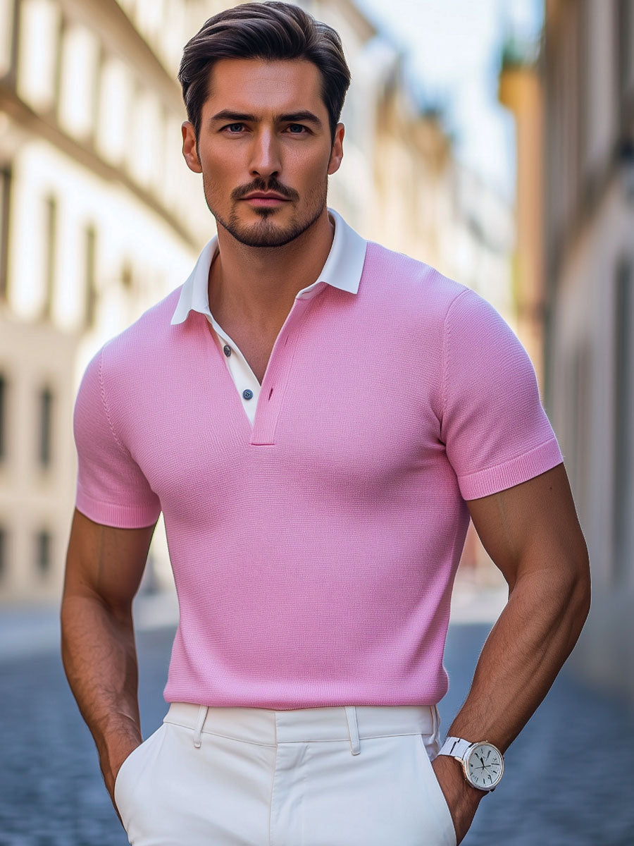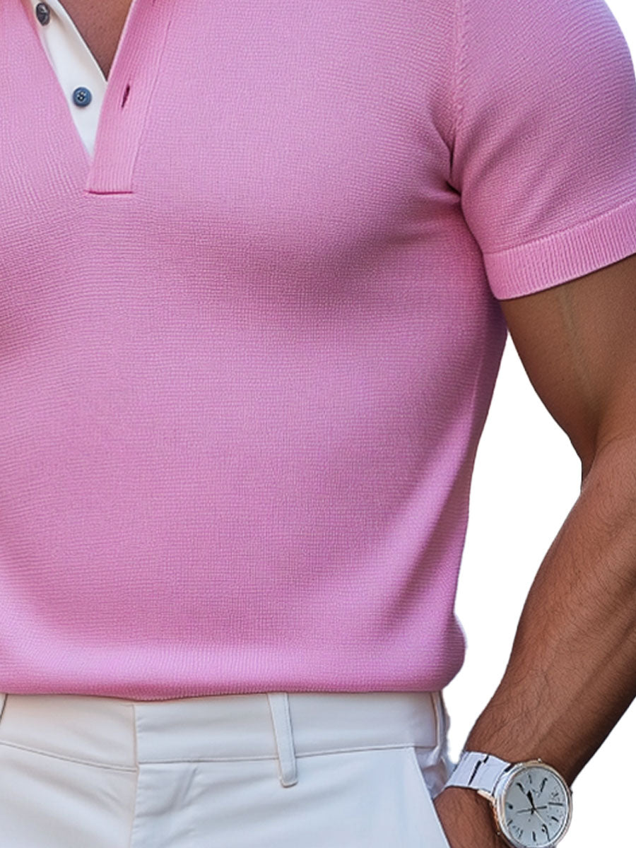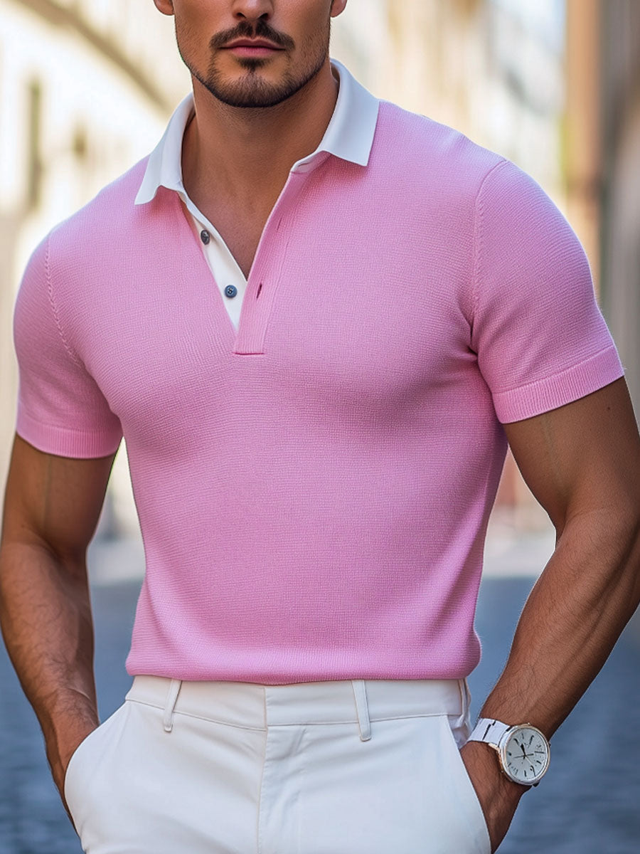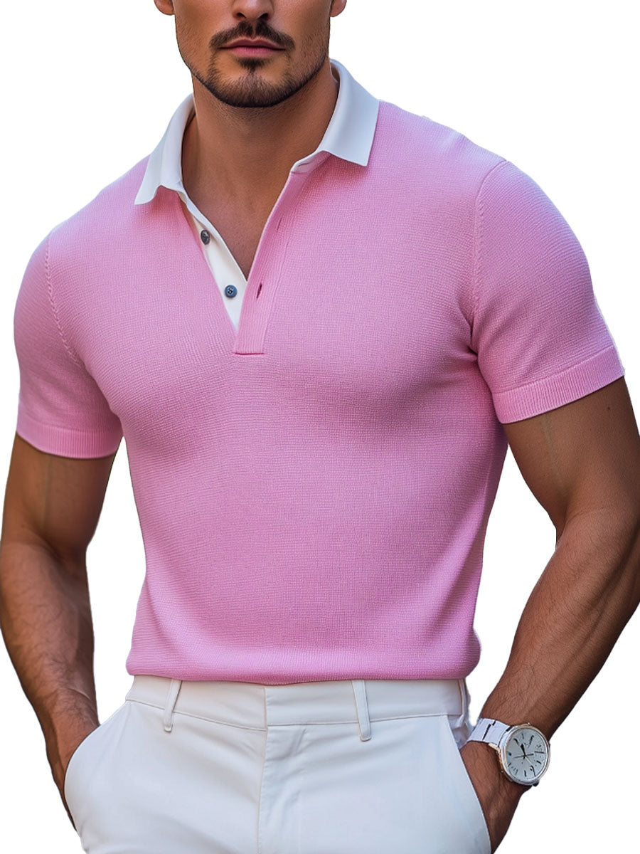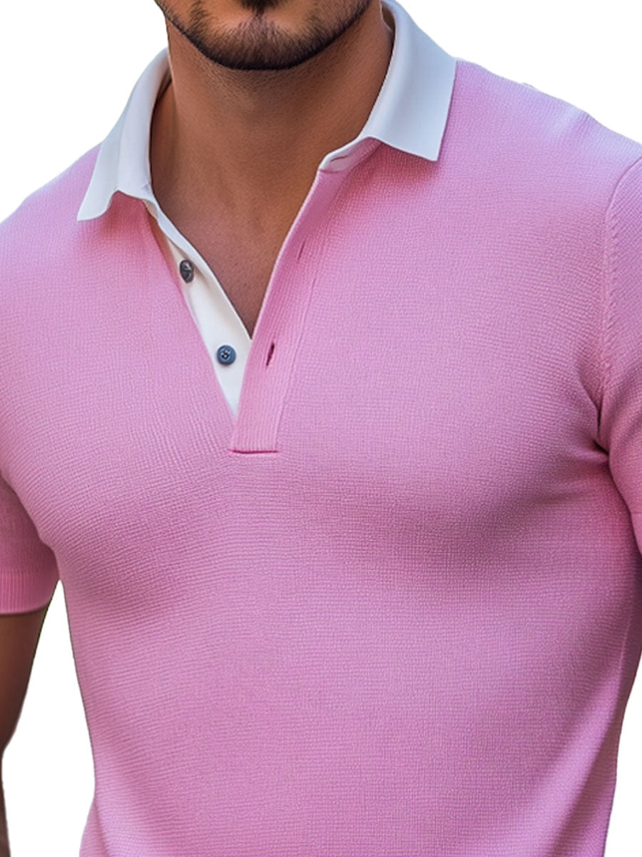 Men's Contrast Color Knitted Short-Sleeved Polo Shirt