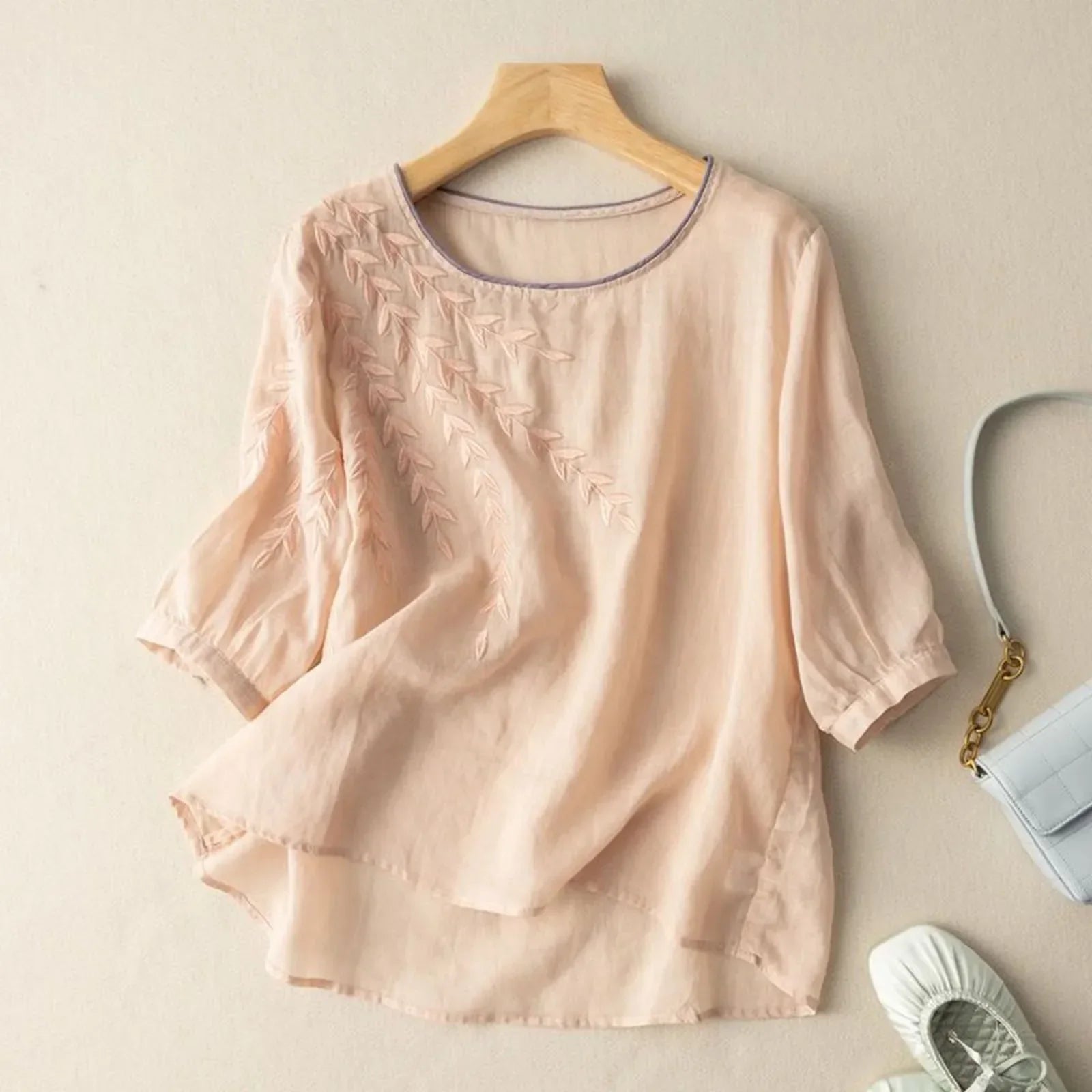 The Miya Vintage Embroidery Blouse is your go-to piece for effortless sophistication and everyday wear. With its stunning embroidery and relaxed fit, this blouse perfectly balances classic charm and modern versatility. Available in a range of enchanting colors—Blush Pink, Ivory, Sage Green, Navy, and Lavender—and sizes Small to 3XL, the Miya blouse is as stylish as it is comfortable.