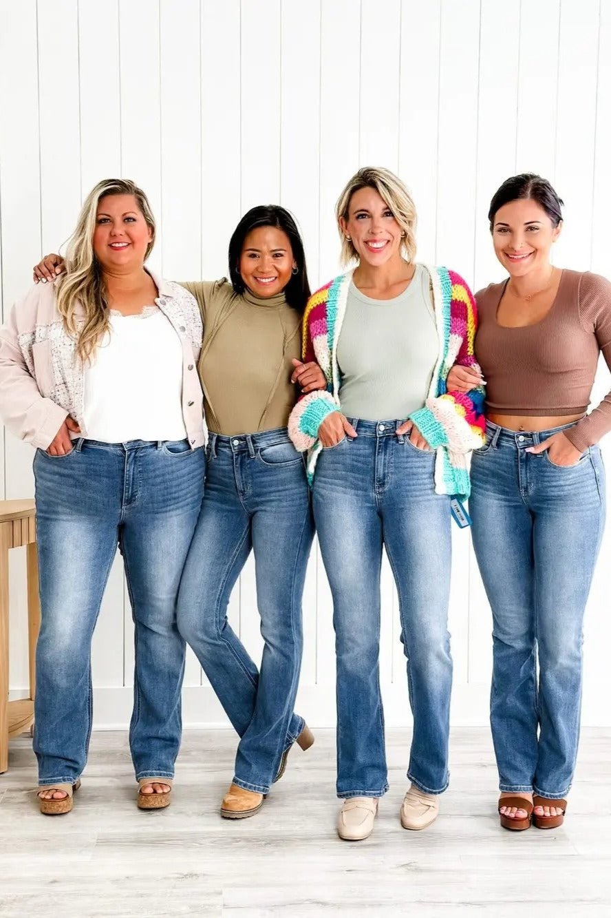 Experience the ultimate in shaping and support with our Myracle Jeans. The tummy control panel offers a smoothing effect, tucking in your tummy and providing a sleek, trim silhouette. The mid-high rise design ensures the jeans hit the perfect spot on your waist, while the strategically placed pockets give your booty a perky, rounded lift (magic!)