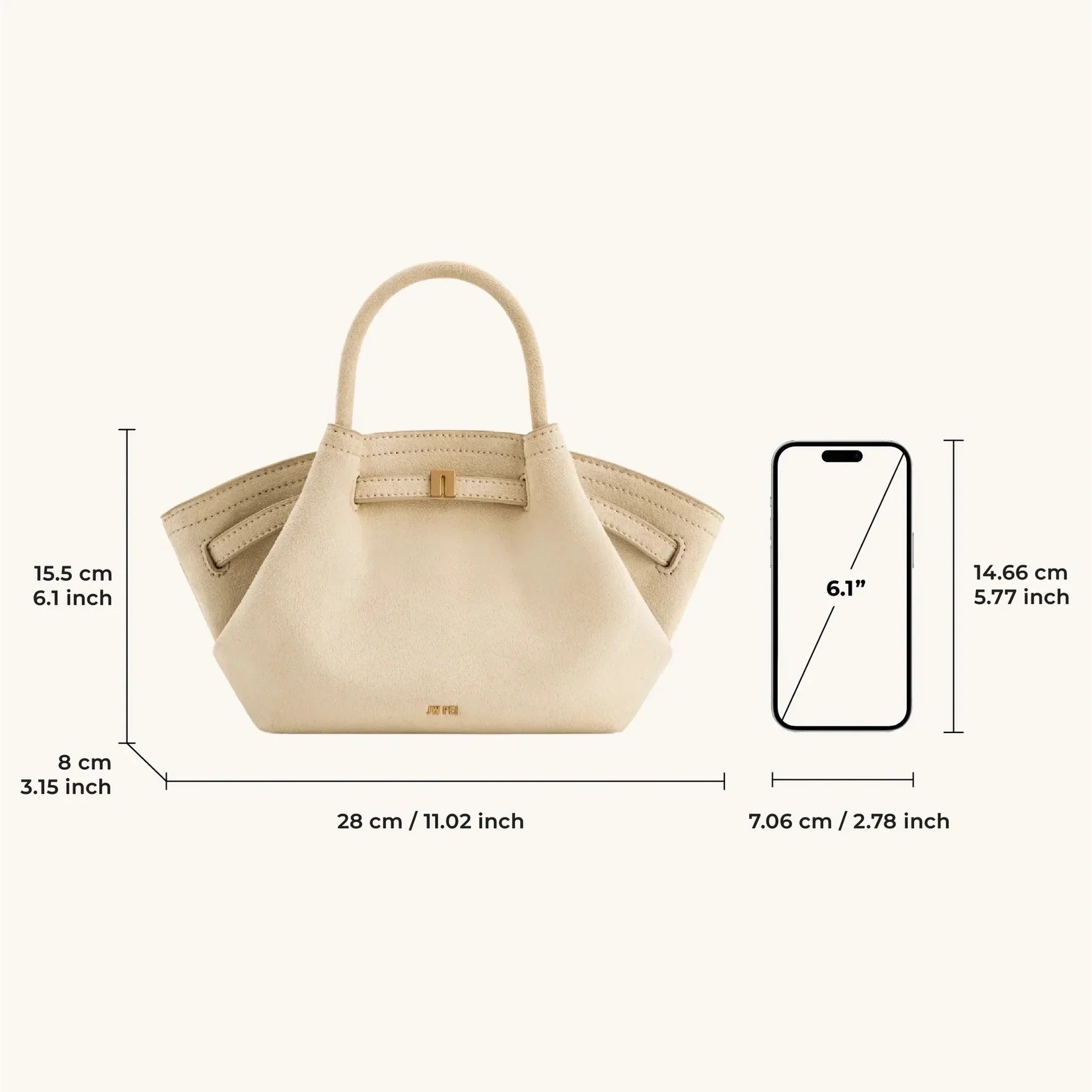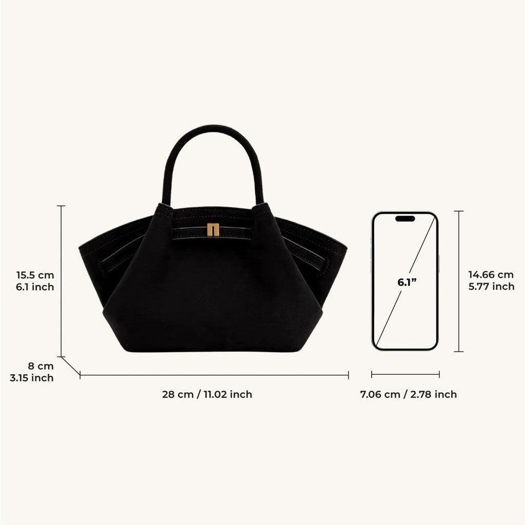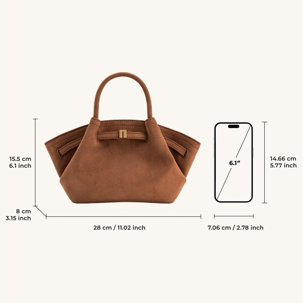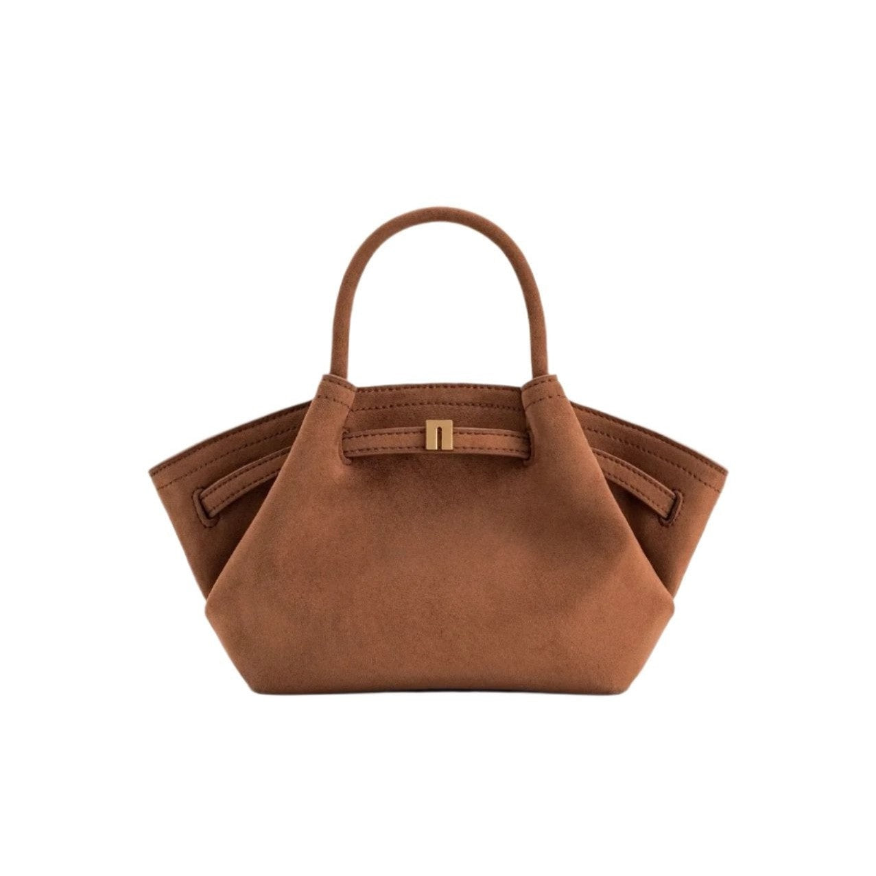 Chic and compact, the Vivienne Work Tote is designed to add effortless elegance to your daily look. With its sleek, structured silhouette, it is crafted from soft faux suede that offers a rich, elegant texture. The clear shape of the bag is complemented by shiny gold hardware, providing a refined finish that pairs well with both casual and formal attire.